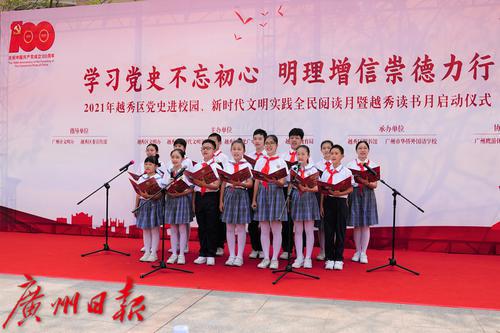 今日广东网讯 昨日,广州市越秀区新时代文明实践中心联合越秀区文化广电旅游体育局、越秀区教育局、越秀区图书馆,在广州市华侨外国语学校正式启动2021年越秀区党史进校园、新时代文明实践全民阅读月暨越秀读书月系列活动。